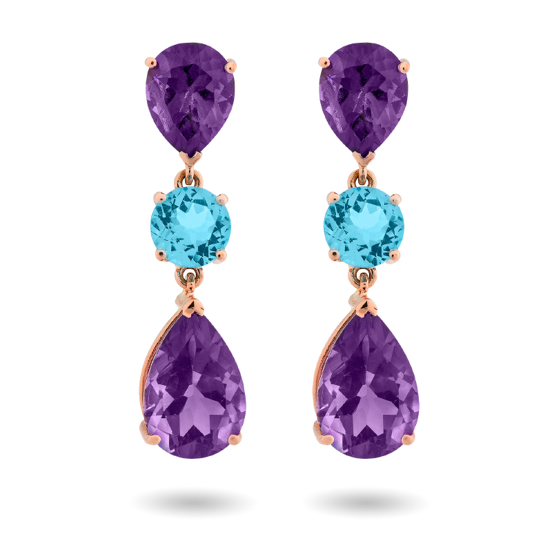 Una selección de joyas que combinan oro, diamantes, topacios azules y amatistas. Diseños alegres y llenos de color para dar el toque de color a los looks más casual y minimalistas.