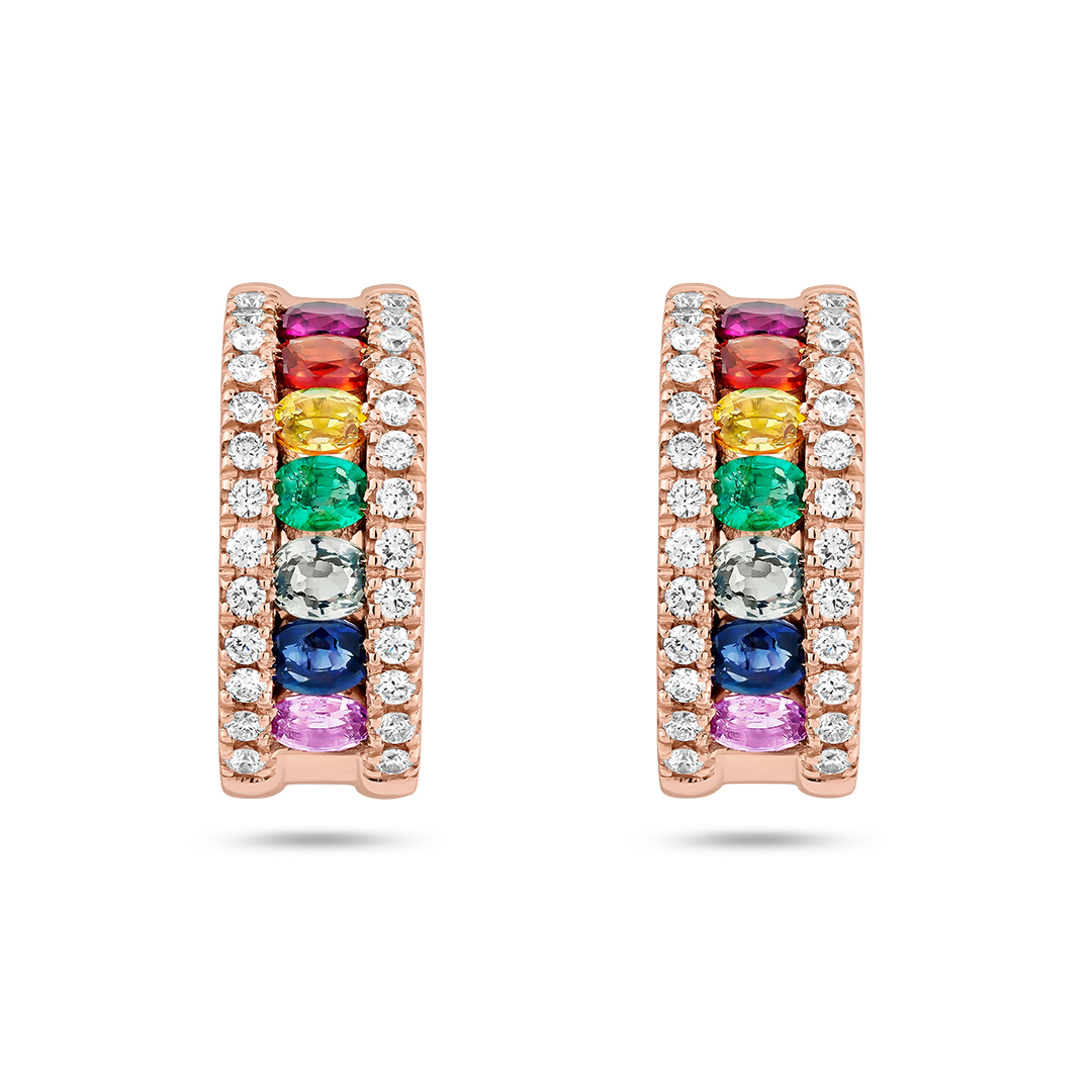 En nuestra tienda online puedes encontrar aros de oro blanco y diamantes, y aros de oro rosa y zafiros rosas.