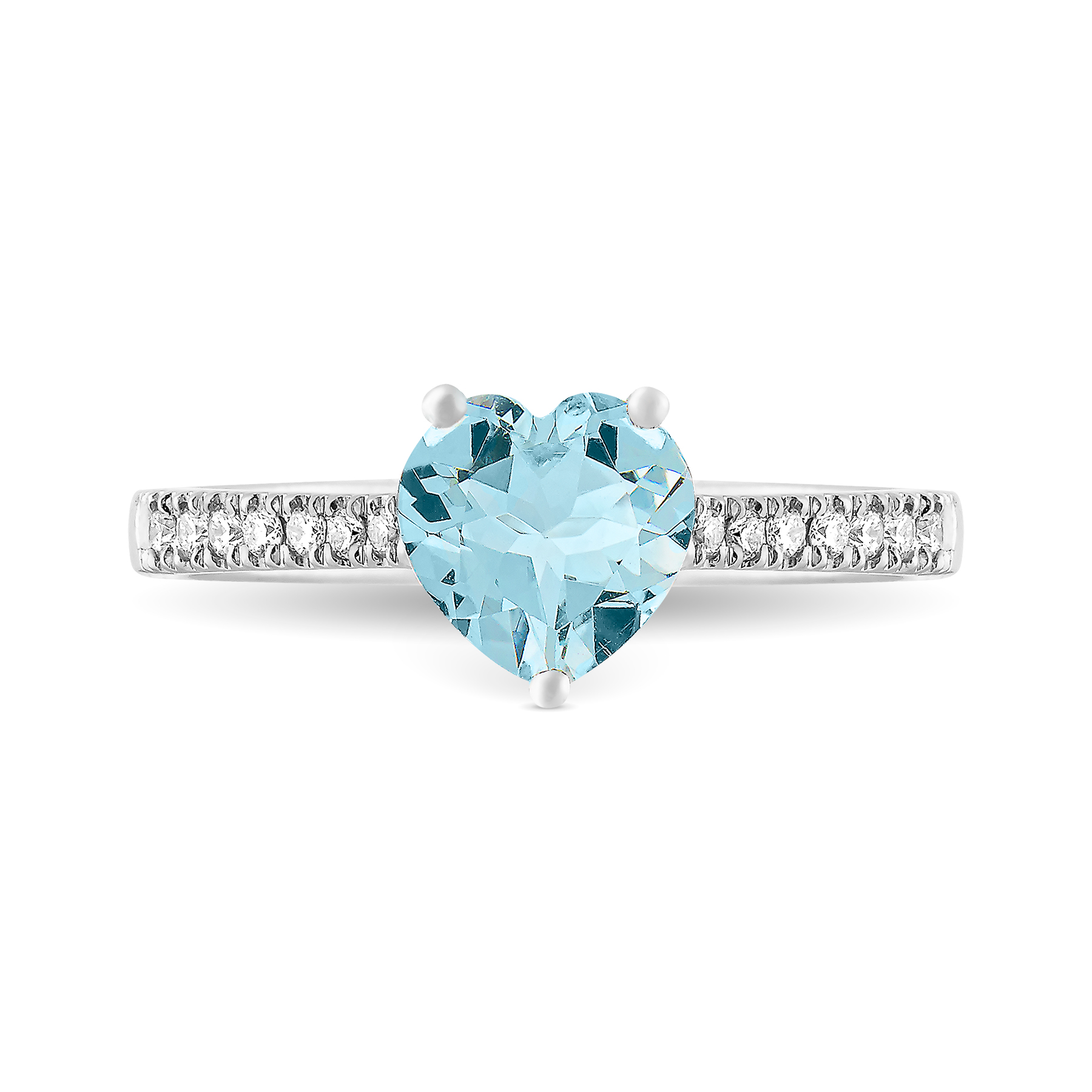 Anillo de oro blanco de 1ª Ley de 18 quilates con una aguamarina central talla corazón y diamantes talla brillante (0,13 cts).