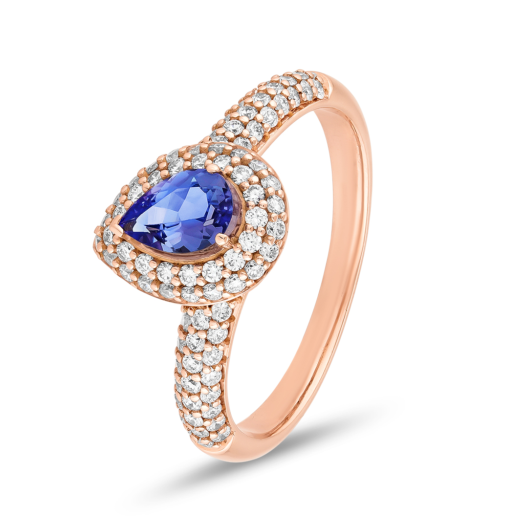 Anillo en oro rosa de 1ª Ley con tanzanita talla pera (peso aproximado de 0,57 ct) y diamantes talla brillante (0,50 ct).