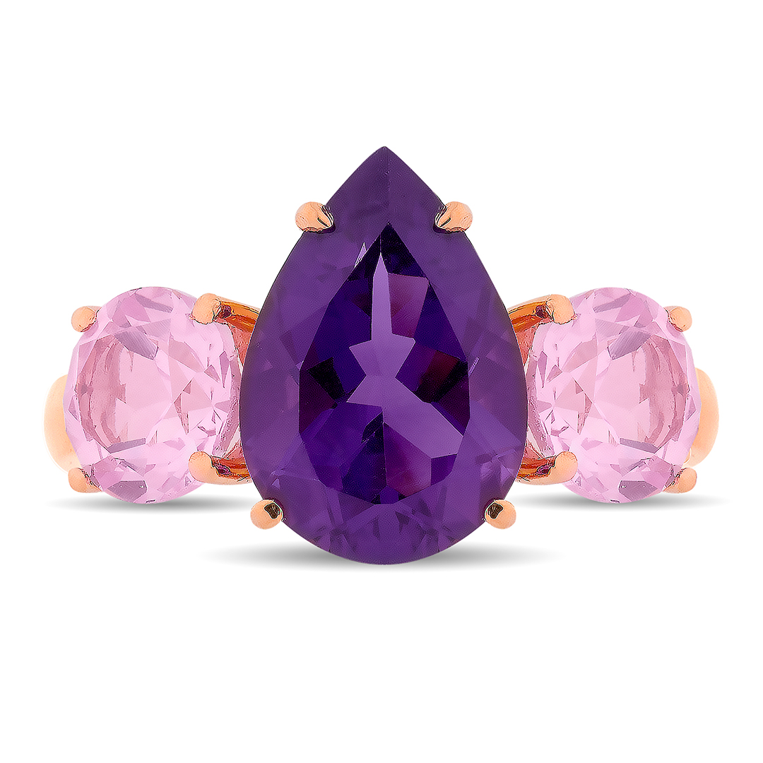 Anillo de oro rosa de 1ª Ley de 18 quilates compuesto por una amatista central talla pera y rosas de Francia.