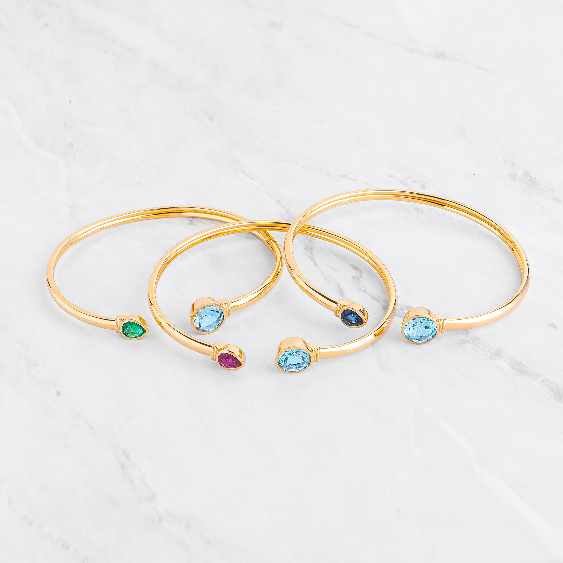 Brazalete de oro amarillo de 1ª Ley de 18 quilates, topacio azul y rubí.