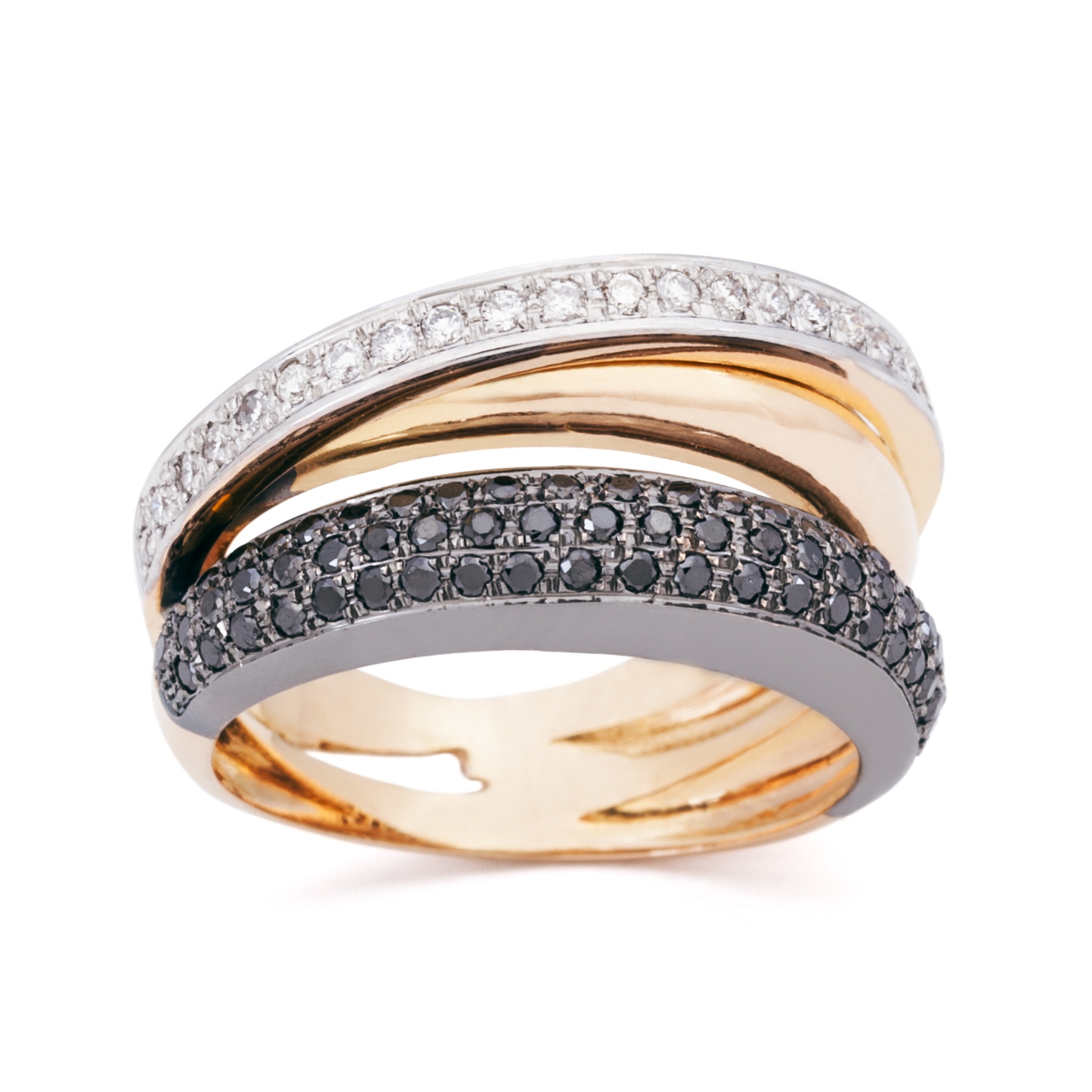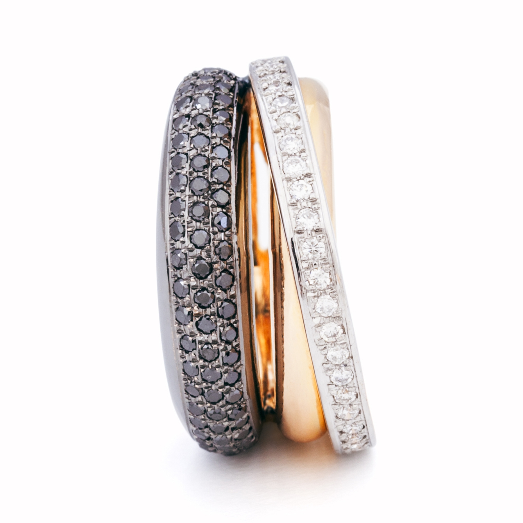 Anillo de oro rosa de 1ª Ley con diamantes HVS y negros.
