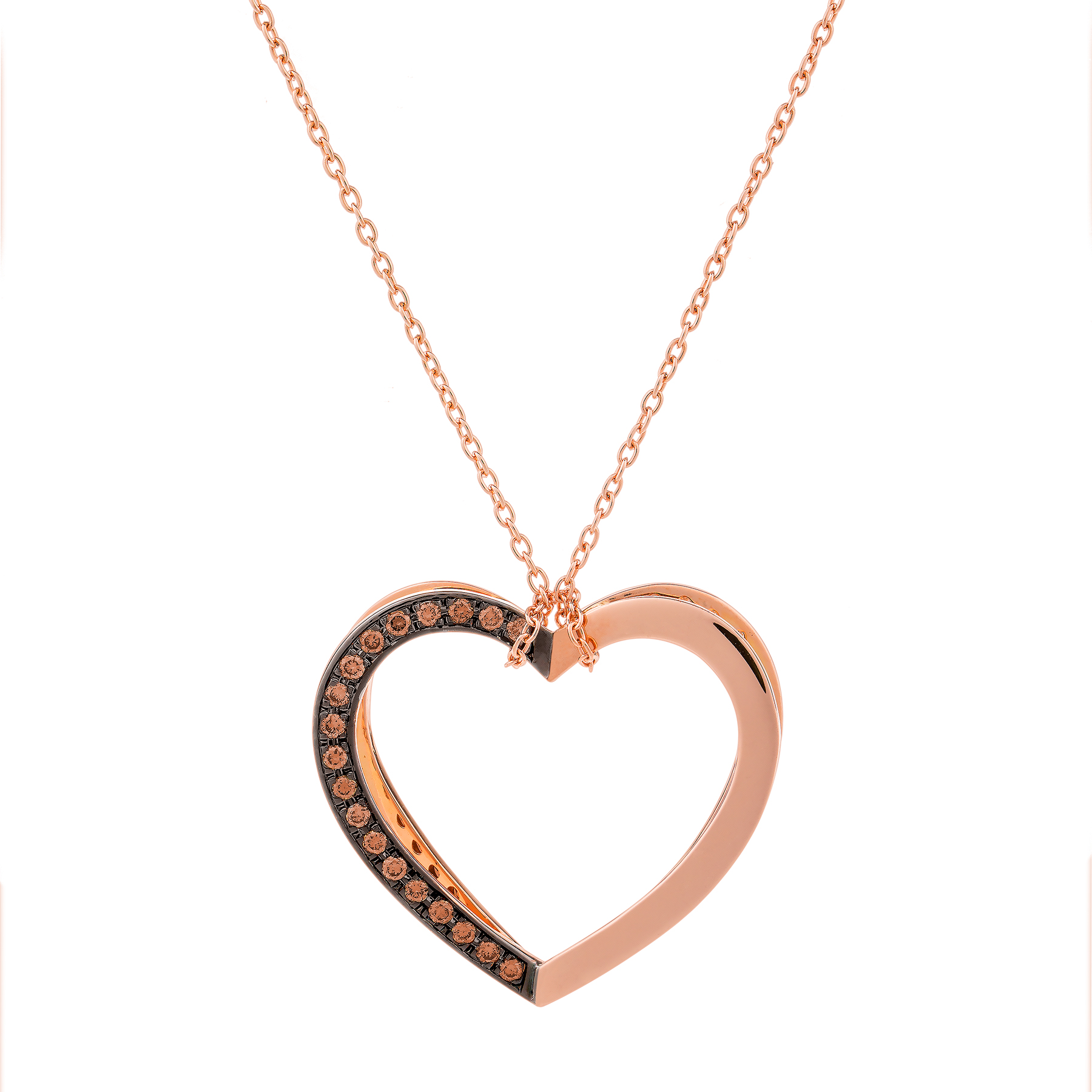 Colgante con cadena de oro rosa de 1ª Ley de 18 quilates con diseño de corazón reversible de diamantes HVS y diamantes brown.
