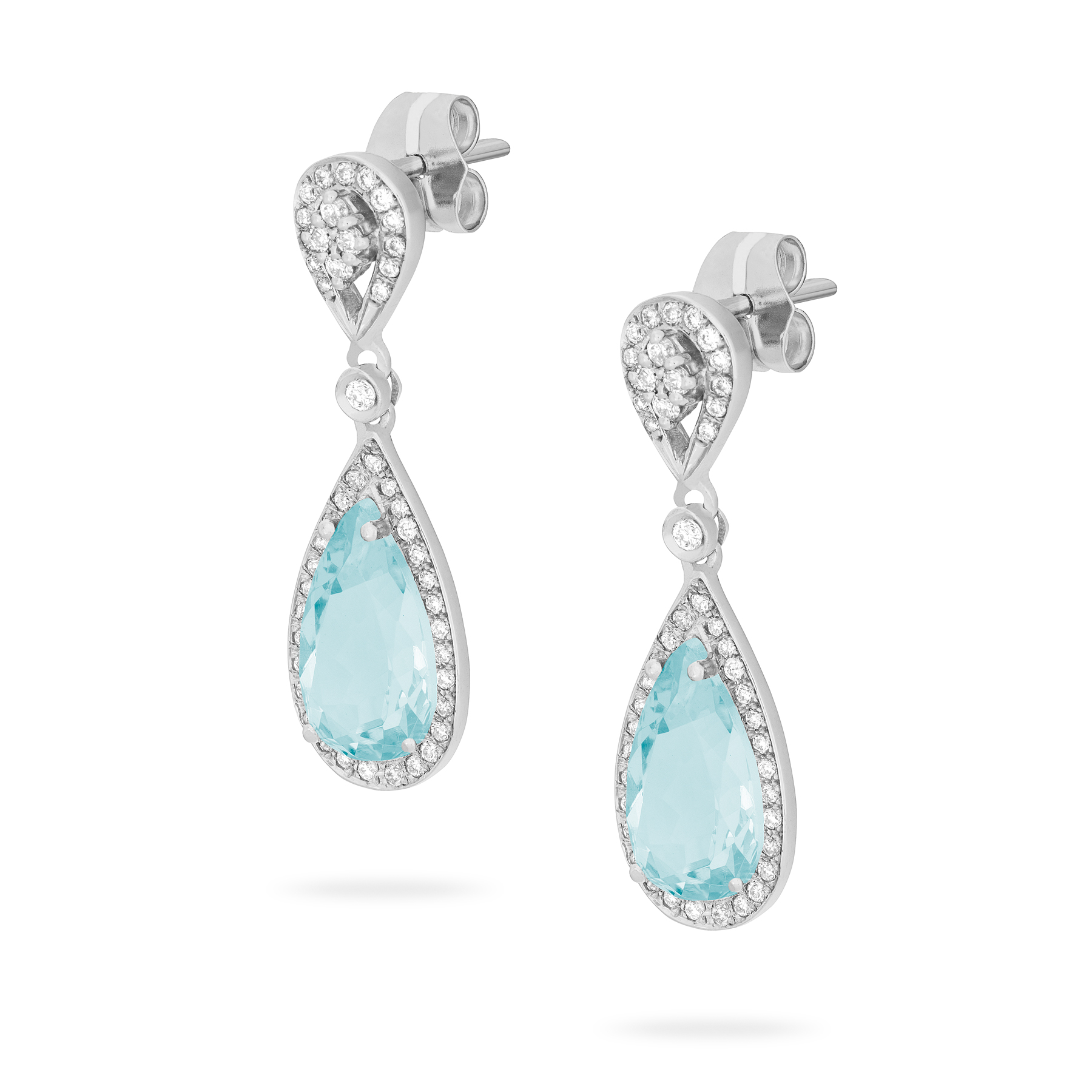 Pendientes de oro blanco de 1ª Ley de 18 quilates compuestos por aguamarinas talla pera y diamantes talla brillante (0,50 ct).